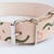 Das Muster aus olivgrünen Wellen und apricotfarbenen Kreisen macht unser Halsband zu einem Highlight mit dem definitiv Akzente setzt.